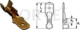 Kolíky ploché neizolované: DIN 46247, lisovacie. Typ P - zahnuté kraje pre ľahšiu montáž.